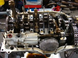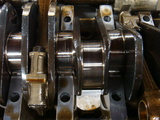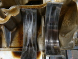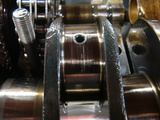 クランクケースを割ったところロッドメタル・ジャーナルの状態が非常に悪く、#3はメタルが流れ始めていました。焼きつく寸前! クランクジャーナルにかなりのキズが入っていますので磨きますがどこまで綺麗になるか?? アンダーサイズ加工はしたくないので本来はクランク交換がよいのですが・・
