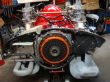 3Lカレラ改 オルタネーターのO/Hも終わり今日乗せます。 画像のオレンジのクラッチカバーはカーボンディスクとセット物の強化品です。 そして向かって右側のタコ足?はヒートエクスチェンジャーを手作りの作品です!